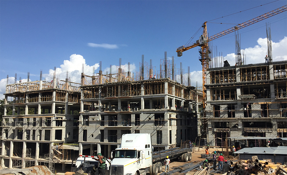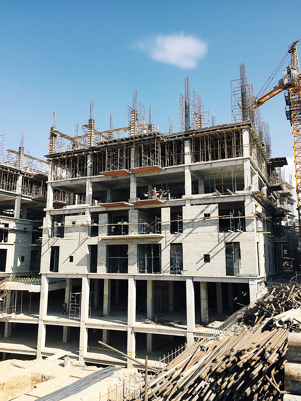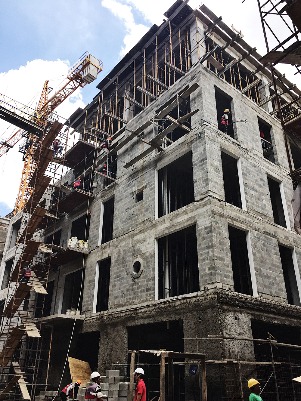 Proyecto de 6,500m2 de levantado de mampostería en block, textura exterior y detalles martelinado.